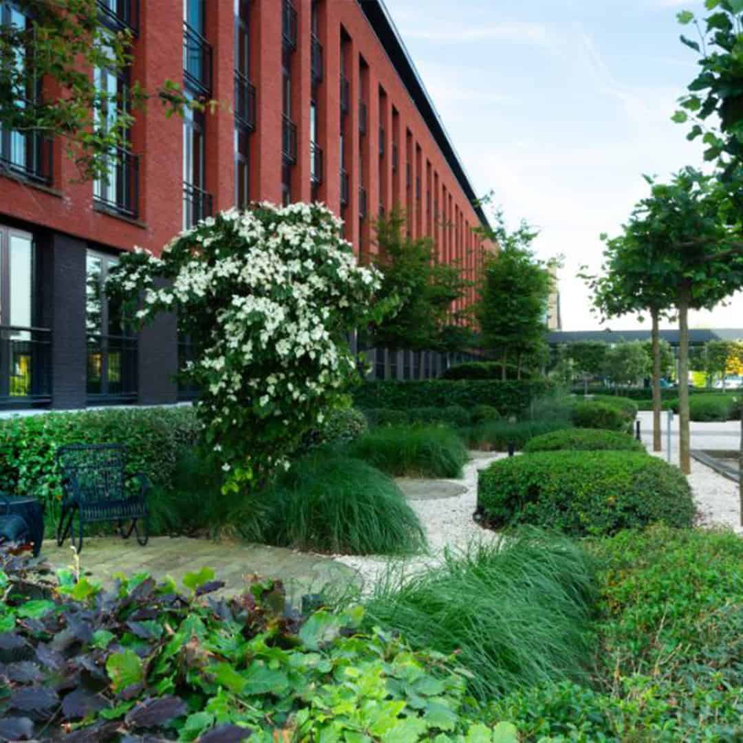 Bij het ontwerpen en aanleggen van een bedrijfstuin houden wij rekening met duurzaamheid en onderhoud. Wij kiezen materialen en beplanting die passen bij intensief gebruik en weinig onderhoud vragen. Daarnaast denken wij vooruit over efficiënt tuinonderhoud, zodat uw bedrijfstuin er het hele jaar verzorgd uitziet zonder dat dit veel tijd of aandacht vraagt. Deze aanpak zorgt voor een betrouwbare en toekomstbestendige oplossing die aansluit bij de wensen van moderne organisaties.